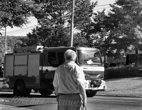 První vlna pomoci. Požár prvního segmentového domu na Jižních svazích ve Zlíně ve čtvrtek 8. července 2010 - oheň viditelný zvenku od 8:30 hod. SELČ, hasiči přijíždějí v 8:45 hod. SELČ a hašení + evakuace začíná v 8:49 hod. SELČ.