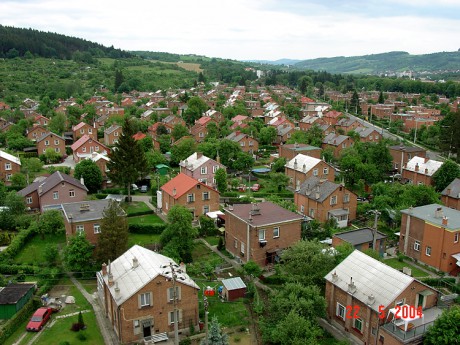 Stav z dubna 2004. Domky se šikmou střechou z let 1924-27 (arch. F.L. Gahura), pravá strana (za cestou) a od východní části Zálešné IX. - 1928-1935, mezidomky a individuálně řešené stavby 1935-37.