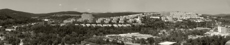 Urbanismus a architektura: I. etapa (uprostřed) - J. Gřegorčík + Š. Zelina (1968), spolupráce V. Vyhňák, A. Adamík, F. Dohnal. II. etapa (vlevo) - D. Živocký, F. Balajka. Panoramatické foto ze střechy Baťova mrakodrapu.