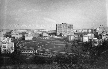 Arch. J.Gřegorčík, Š.Zelina; spolupráce V.Vyhňák, A.Adamík, F.Dohnal. Pohled z prostoru jižně od Vavrečkovy vily k ulici Dlouhá a prvnímu segmentu. Foto negativu z května 1978.