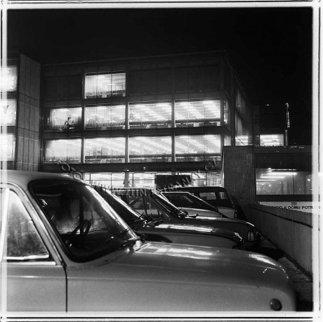 Arch. Šebestián Zelina. Uprostřed snímku Dům obuvi, fotografováno ze střechy podzemních garáží v prosinci 1989. Digifoto negativu 6 x 6.