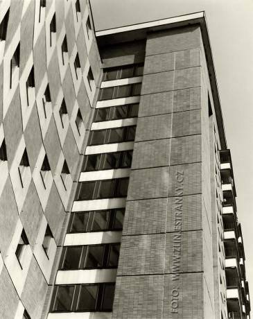 Dostavěn v r. 1980 s celým komplexem Panorama. Jím končí I. etapa sídliště, kterou vyprojektovali J. Gřegorčík, Š. Zelina, V. Vyhňák, A. Adamík a F. Dohnal. V tomto roce též přejmenována Okružní třída na třídu SNB. Středoformátové foto z r. 1990.