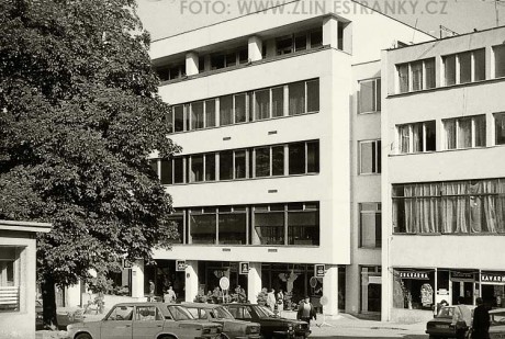 Arch. Z.Jašek, J.Láska a S.Mikeska (Projektový ústav Českého svazu výrobních družstev Brno). Foto negativu z října 1986. ---- Vedle fotografovaného objektu stojí Malotova cukrárna od Miroslava Lorence (zničena v roce 1989).