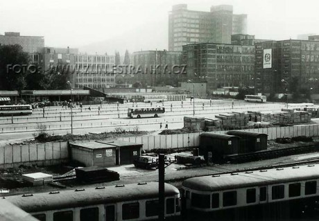 Dopravoprojekt Brno; od r. 1988 arch. P.Šimeček. V pozadí o.p. Svit. Část ÚAN - ve značně omezené míře - začala fungovat roku 1984. Foto období bez zastřešení, cca 1988. Scann náhledu.