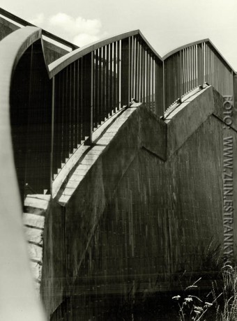 Projekt: Stavoprojekt Gottwaldov - V.Mauer, J.Bačík, P.Šimeček, K. Tuzarová. Investor: silniční investorský útvar Brno. Předpjatá konstrukce-dvojtrám-tvořený segmenty šířky 3 m. Otevřeno k provozu 1. října 1986. Středoformátové foto 16. července 1989.