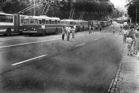 Zprovoznění trolejbusové dráhy na Jižní svahy dne 29. května 1989. Historická i soudobá vozidla s hudbou a mažoretkami. Poslední velká sláva kolem vybudovaného díla.