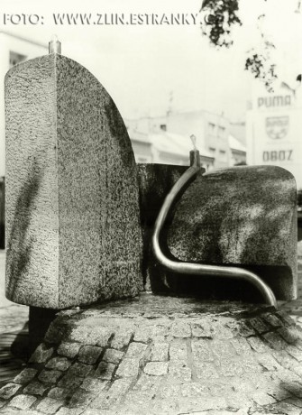 Náměstí rekonstruováno dle návrhu akad. arch. Adolfa Zikmunda, nár. umělce prof. Habarta a Stavoprojektu Gottwaldov. Původně zde měla fungovat kašna. Zvláštní její náhražka je snad zbytkem z nějaké školy. Středoformátové foto z 20. července 1992.
