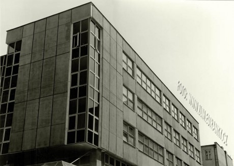 Arch. Ivan Bergmann. Původně jako budova pojišťovny a finanční správy (ČSSP a f.ú.). Budována od r. 1988 do r. 1990. Osazena bytnějícím úřednictvem v létě 1990. Středoformátové foto 28. července 1990.