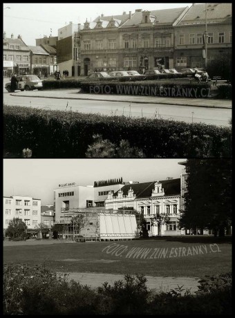 Nahoře: scann náhledu z března 1987; dole říjen 2009. Na původní posici jsem nemohl, snímku by začala dominovat hnusná šopa. Navíc historický snímek jsem omylem vzal ze svého webu = výsledek není přesně takový, jaký bych si představoval.