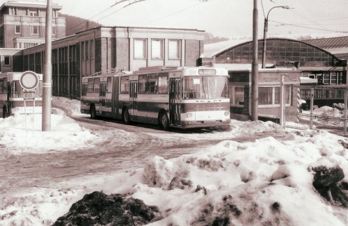 Obě záloženské budovy v prosinci 1990. Budova s kulatým vývěsním štítem zcela vpravo - vinárna "U slunce".
